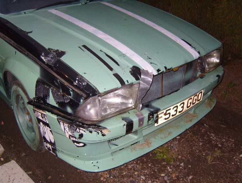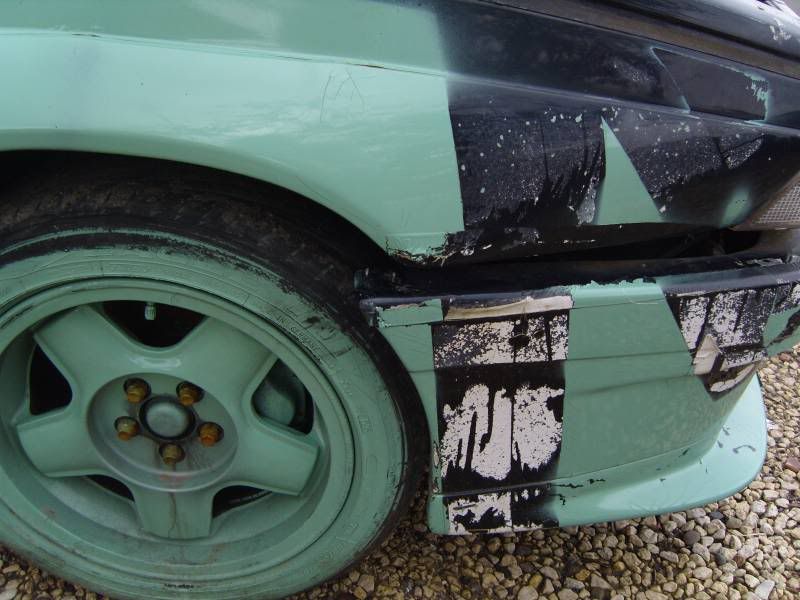 here you can see the hole on the wing were the bolt has been ripped out and the 2 bent front mounts (one with the snapped mount off the bumper)